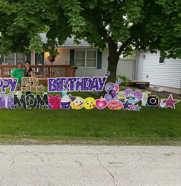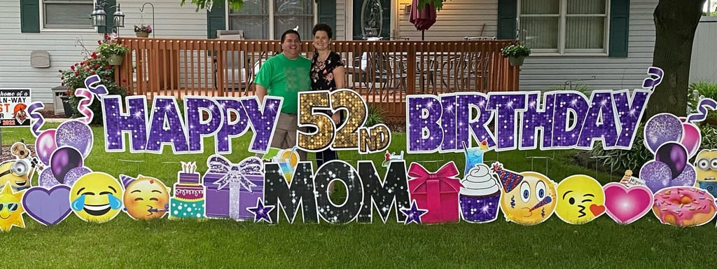 At Celebrate With A Yard Card, our mission is to spread joy, one personalized display at a time. As a family-owned business, we pour our hearts into crafting unique designs that reflect the individuality and interests of each recipient. From birthdays to graduations, we believe every occasion deserves a touch of magic. With meticulous attention to detail and a passion for making memories, we strive to exceed expectations and create unforgettable moments that bring smiles and warmth to our customers' hearts. Celebrate With A Yard Card isn't just about decorations; it's about celebrating life's special moments with love and creativity.